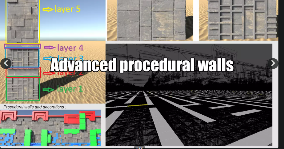 - Use your own prefabs for custom walls composed of multiple customizable layers and decorations.